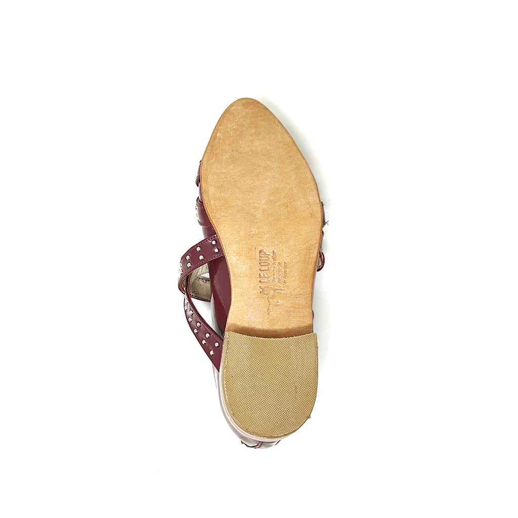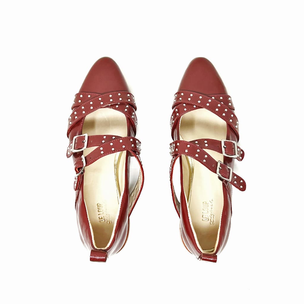 Audacia y estilo en cada paso. Hechas de cuero charolado y adornadas con tachas, estas ballerinas ofrecen un toque de rebeldía y sofisticación, perfectas para un look moderno y llamativo.