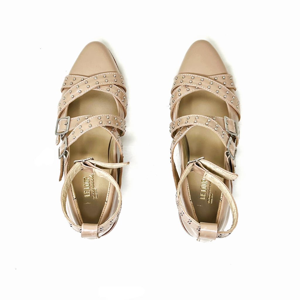 Audacia y estilo en cada paso. Hechas de cuero charolado y adornadas con tachas, estas ballerinas ofrecen un toque de rebeldía y sofisticación, perfectas para un look moderno y llamativo.