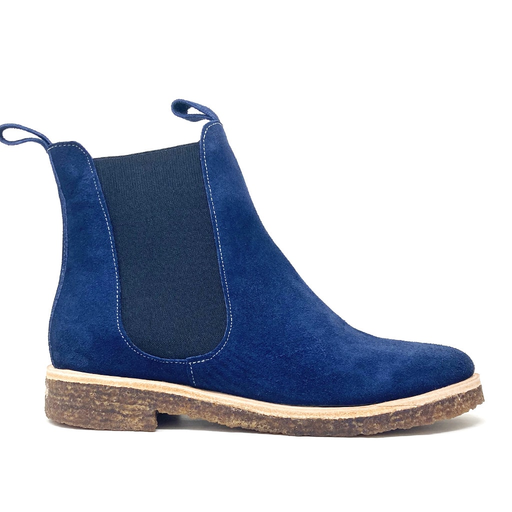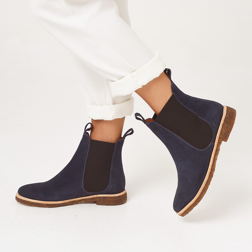 Penny: bota de cuero gamuzado con elásticos laterales y suela de crepe aislante, que brinda comodidad, estilo y tracción.